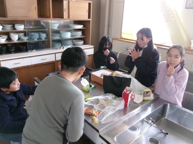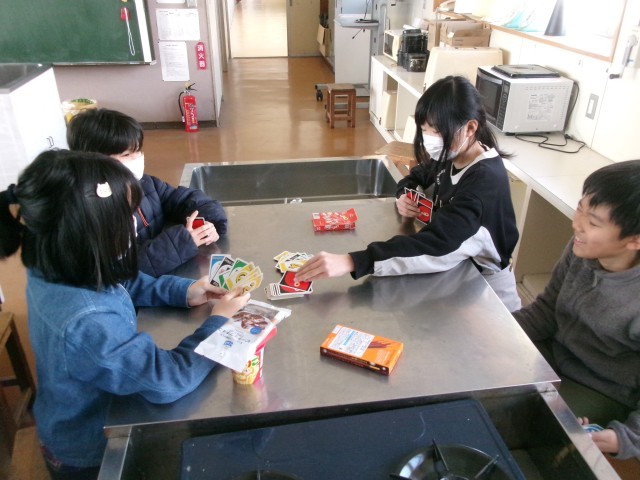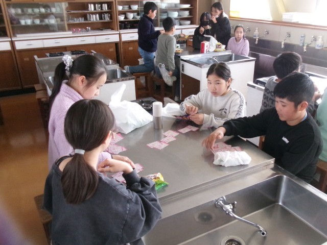 5年2組の家庭科「いっしょに『ほっとタイム』」の様子です。