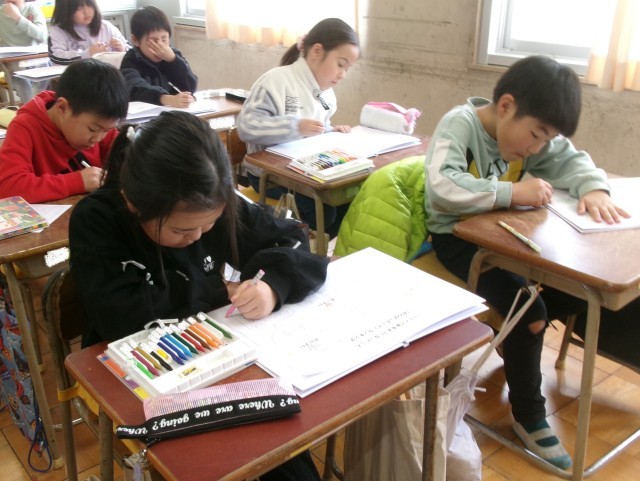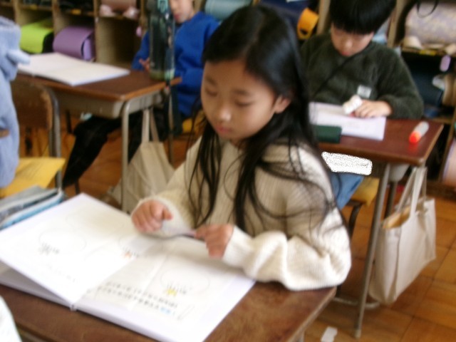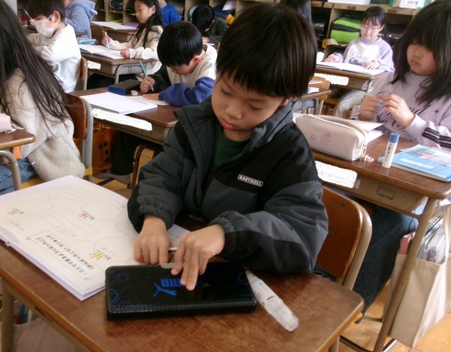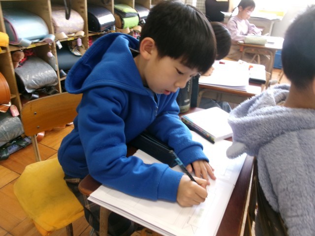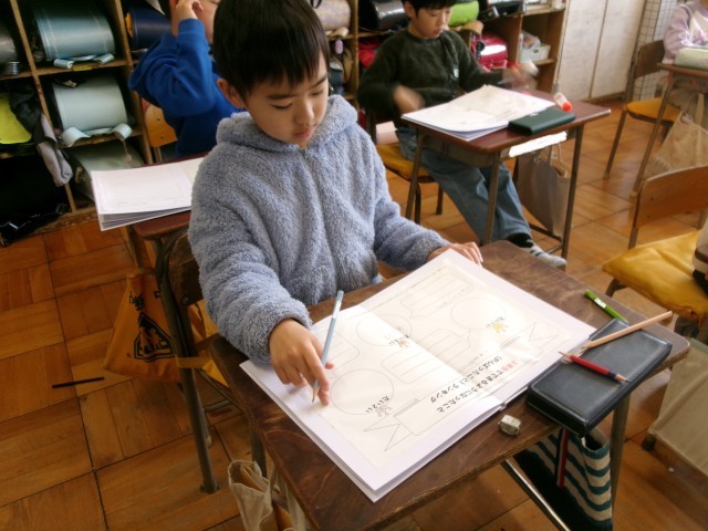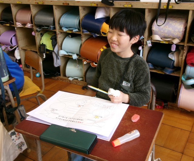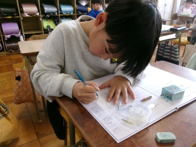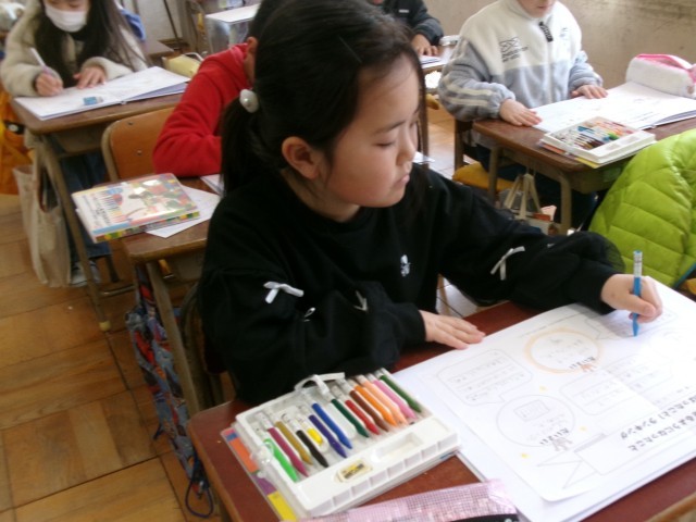 2年2組の生活科の授業の様子です。自分の成長を振り返る絵本を作っています。