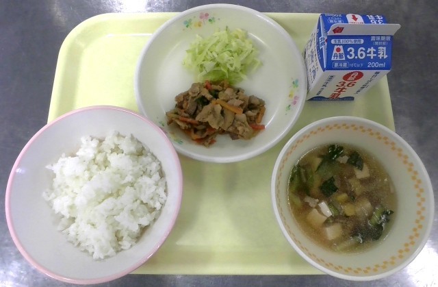 ごはん 牛乳 スタミナ焼肉 ボイルドキャベツ 春雨スープ