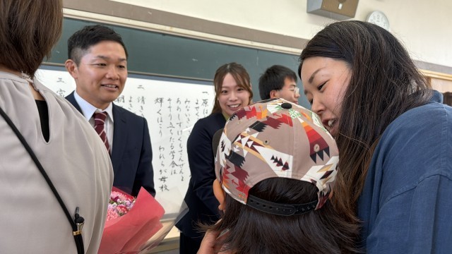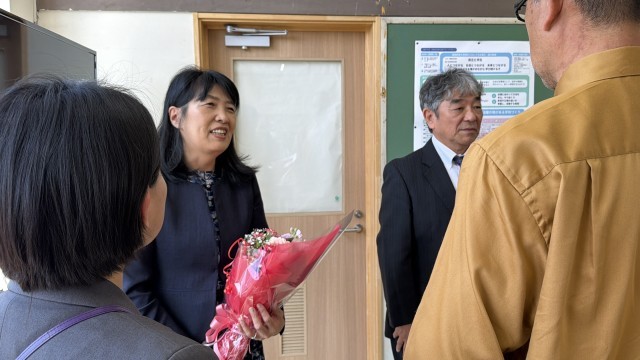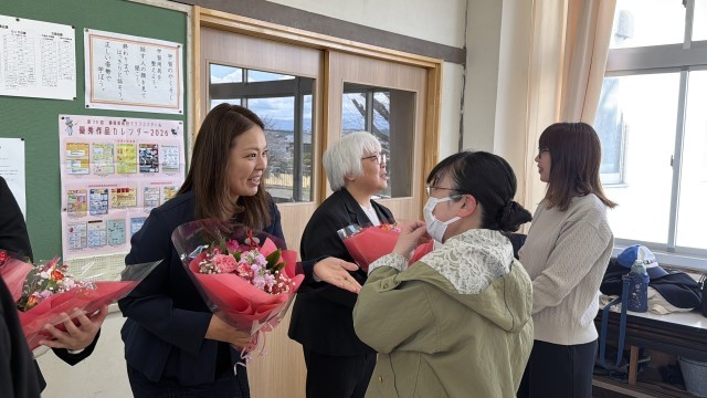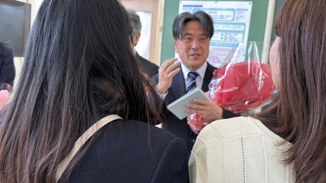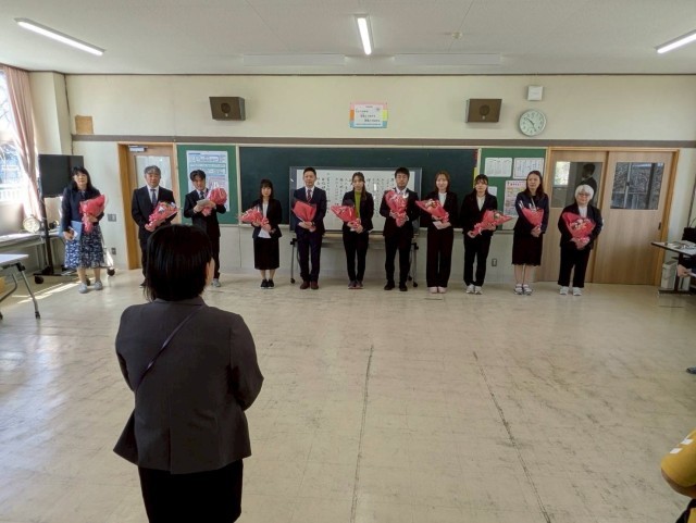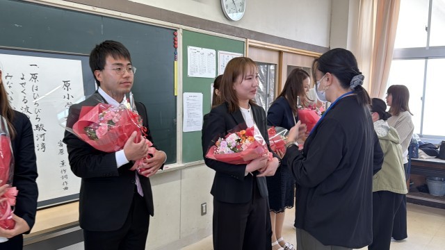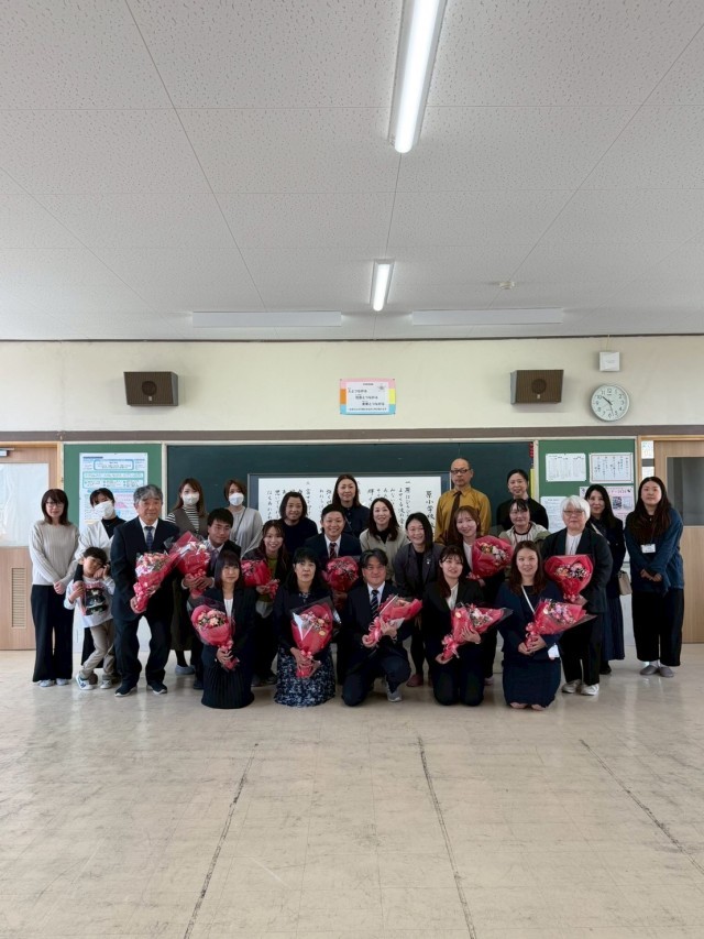 今年度で退職、離任される先生方へ感謝の気持ちを込めて、離任式の前にPTAより、花束の贈呈を行いました。