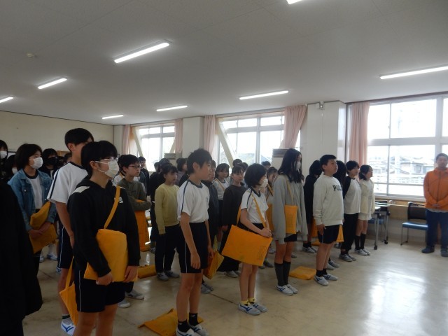 6年部の先生方から、クラス、学年の仲間を大切にするあたたかい集団になっていってほしい。その中で原地区小中一貫目標「自立」と「共生」についてわかりやすく説明がありました。