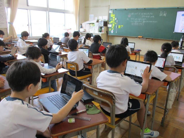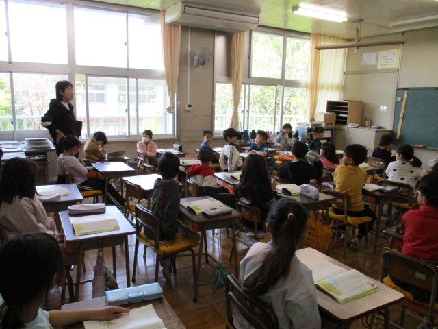低学年の教室では、先生の話をよく聴き、数を数えたり、教科書から考えたり・・・
