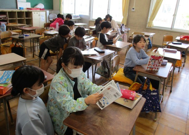 休み時間には、図書館で借りた本をじっくりと読む姿も見られました。