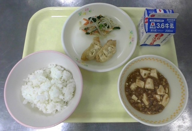 ごはん 牛乳 マーボ豆腐 揚げぎょうざ 塩ナムル