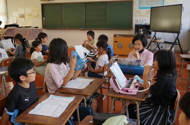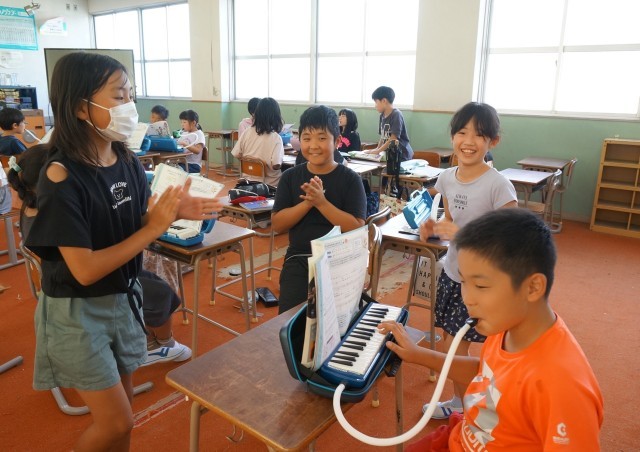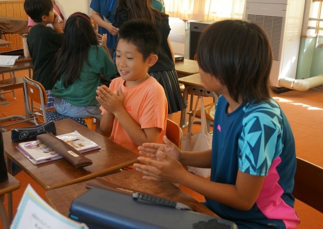 4年1組の音楽の授業の様子です。グループでリズム打ちをしていました。失敗しても笑顔があふれています。