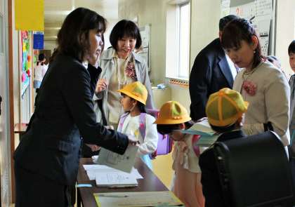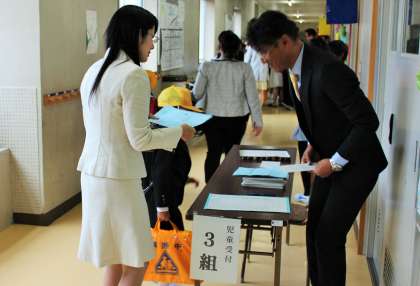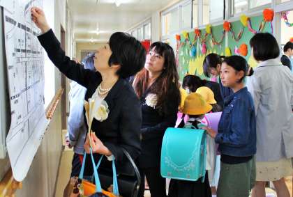 受付後に、校区図を見て自宅のある場所にシールを貼ります。