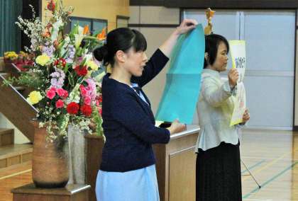 1年の担任の先生の紹介及び1年の先生からのお話の様子です。