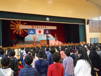今年度最初の原小校歌の歌声が、元気よく体育館に響き渡りました。