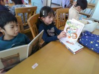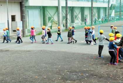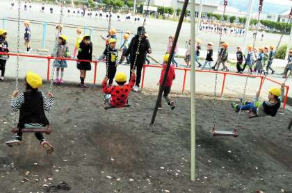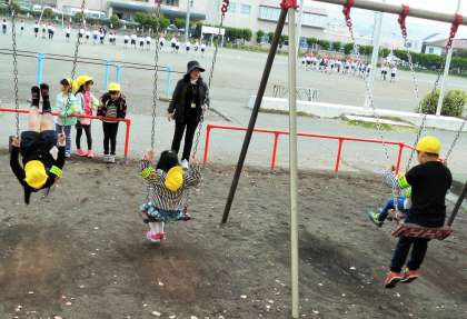 北校舎の北側にあるブランコにのっている子供たちの様子です。