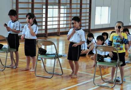 1年間でどれだけ成長したのでしょうか。健康手帳に記入をして確認をします。