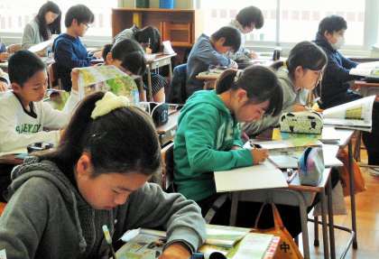 「縄文時代とは、どんな時代だったのだろうか」の学習問題に対して、「衣」「食」「住」の3つの観点から調べ学習をしている場面です。