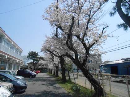 校庭の桜が満開です。
