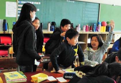 地図帳の使い方に慣れるために、地図帳を使った「地名にまつわる」学習をしていました。大盛り上がりの子供たちでした。