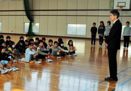 交通安全リーダーのてびきの話の後、校長先生から「自分の命だけでなく、原小の子供たち全員の命を守るために、リーダーとしての行動を期待している」というお話がありました。