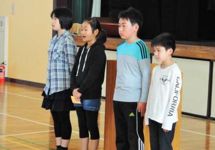 交通安全リーダーのてびきの話の後、校長先生から「自分の命だけでなく、原小の子供たち全員の命を守るために、リーダーとしての行動を期待している」というお話がありました。