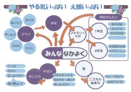 2年生の学年目標は、「やる気いっぱい え顔いっぱい」です。この目標の達成に向けて、子どもたちと話し合い、下のような計画を立てました。