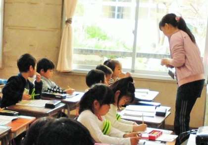 「10までのかず」の学習で、教科書にある動物やくだものなど数をかぞえて数字で表していました。