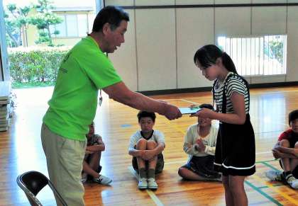 担当の方から「エコリーダー認定証」をいただいている子供たちの様子 その2です。