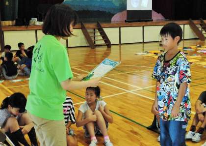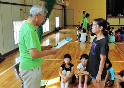 担当の方から「エコリーダー認定証」をいただいている子供たちの様子 その3です。