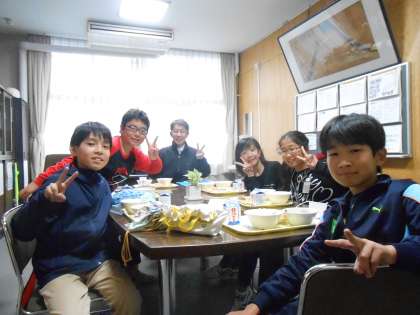 校長先生との会食です。 今日の会食は、6年2組の第1グループです。