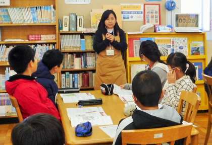 学校司書の森野先生に授業に入っていただき、ビブリオバトルの進め方についての説明を受けました。
