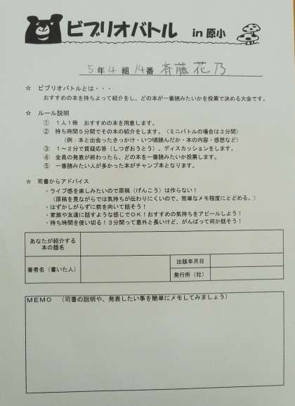 5年生は、読解の時間に「ミニビブリオバトルをやってみよう」の学習を行いました。