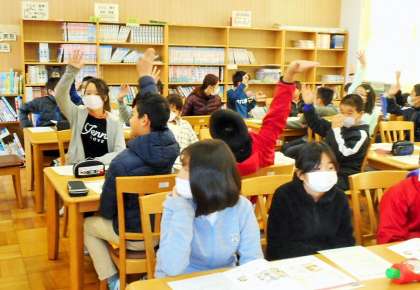 ビブリオバトルでは、本の紹介の後、質疑応答をしますが、今日は、森野先生に対して、子供たちが質問をしました。「なるほど」と思うような鋭い質問もありました。
