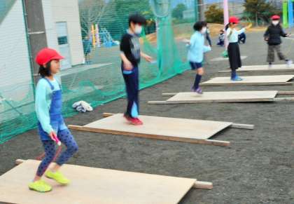難しい技を練習するためのジャンピングボードは大人気で、たくさんの子供たちが順番に練習をしていました。