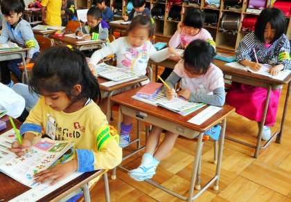 「10までのかず」の学習で、教科書にある問題をやっている場面です。「かんたんだよ」という声が聞かれました。