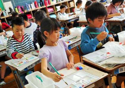 原色(赤・青・黄色・白)を混ぜ合わせてできる色遊びをやっていました。きれいな色ができた子供たちは大喜びでした。