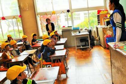 はじめに、各教室で交通指導員さんから説明を聞きました。図や絵を使っての説明が、子供たちにもわかりやすかったです。
