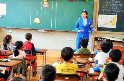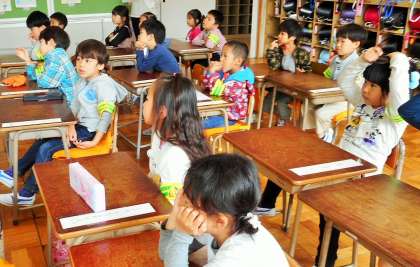 はじめに、各教室で交通指導員さんから説明を聞きました。図や絵を使っての説明が、子供たちにもわかりやすかったです。
