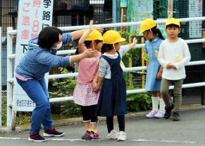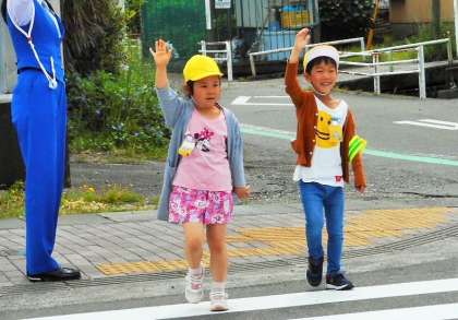 保護者の方も、交通安全教室のお手伝いをしてくださいました。