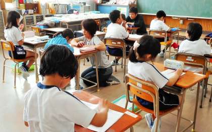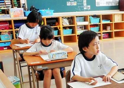 一人一人が、自分の課題にあった計算プリントに取り組んでいました。遠勢先生が出張なので、かわりに眞田先生が授業に入ってくださいました。