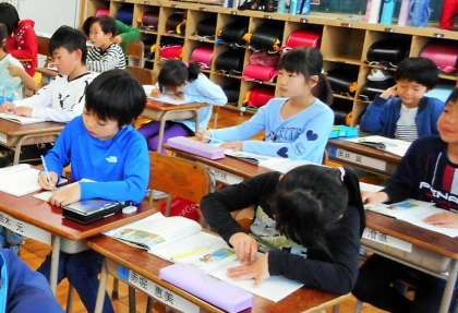 「つり橋わたれ」の学習で、教材文を「たけのこ読み」で読んだ後、学習問題の確認をしました。ノートに書き込んでいる場面です。。