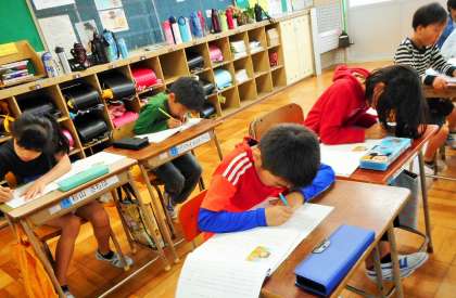 「つり橋わたれ」の学習で、教材文を「たけのこ読み」で読んだ後、学習問題の確認をしました。ノートに書き込んでいる場面です。。