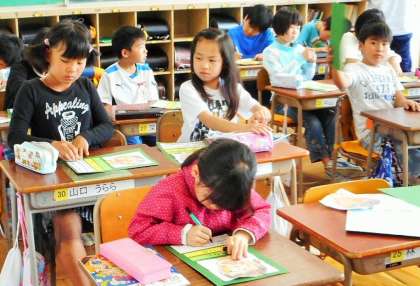 掲示用の自己紹介カードを作成していました。自画像、名前、誕生日、アピールポイントが書かれています。