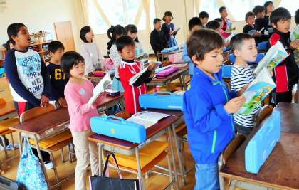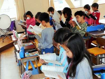 授業のはじめに「今月の歌 ビリーブ」を歌っている場面です。気持ちよさそうに歌っている子がたくさんいました。