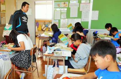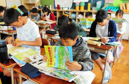 「天皇中心の国づくり」の学習で、法隆寺を建てた聖徳太子が行ったことについて、資料集や地図帳を使って調べていました。どんなことをしたのかについて関心を持つことがねらいとなります。