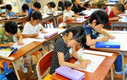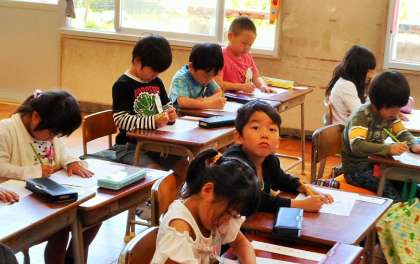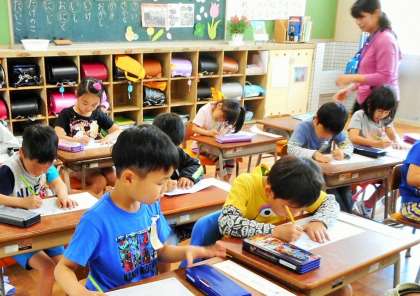 ひらがなの「え」についての学習です。ワークシートを使って「も」を繰り返し書いたり、「も」のつく言葉を書いたりしていました。