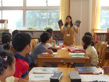 2年生では、担任と司書教諭(学校司書)とのティームティーチングで、図書館での授業の学習を進めています。