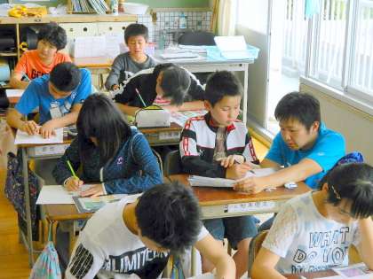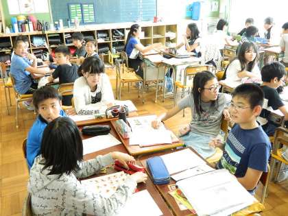 6年生の授業です。グループで朝食作りの調理計画を立てている場面です。材料の種類や数量を細かく考えていました。もう1クラスは図工のデッサンをしています。さすが、6年生。植物の細部まで観察し、構図を考えて鉛筆を走らせていました。