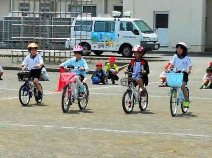 3組の子供たちが、自転車に乗っている様子です。