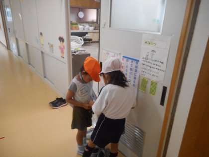 「ここが職員室だよ」「先生たちが、お仕事するよ」「パソコンが机の上にあるね」