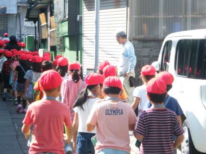 いよいよ、原駅に向けて、出発です。通り道で、地域の方々に声を掛けられ、「こんにちは」「原駅に行きます!」と元気に答えていました。