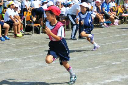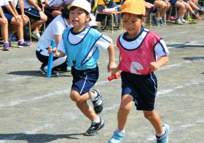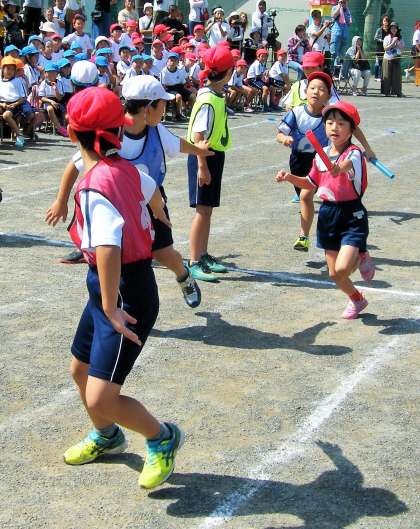 プログラム15番 特別種目「選抜対抗リレー(1〜4年)」の競技の様子です。