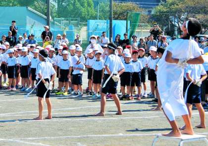 白組の応援の様子です。赤組と同じように工夫した応援が行われました。