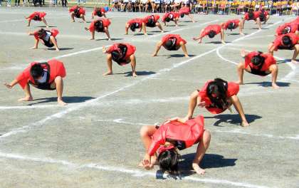 代表児童が演技の紹介をした後、音楽に合わせて踊りが始まりました。