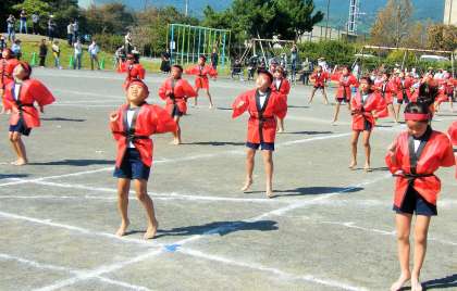 午後のプログラム4番 4年表現「全力 どっこいソーラン!!」の演技の様子 その2です。