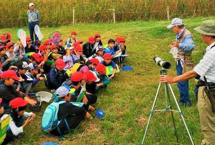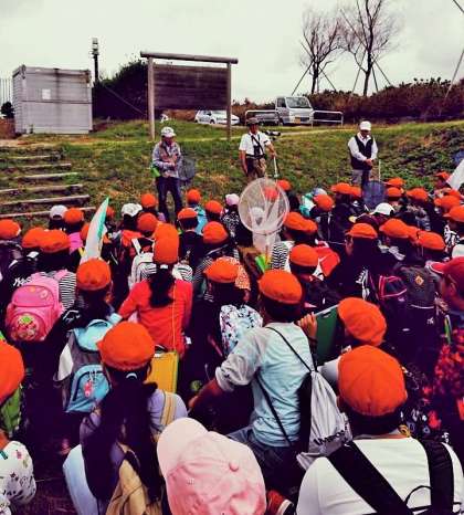 今日は、アクアプラザ(浮島沼)に出かけて、原・浮島地区に生息する生き物にかんする学習を行っています。